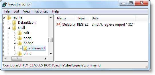 cmd / k reg.exe импорт «% 1»