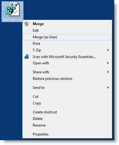 Добавьте параметр контекстного меню «Объединить (как пользователь)» для файлов .REG