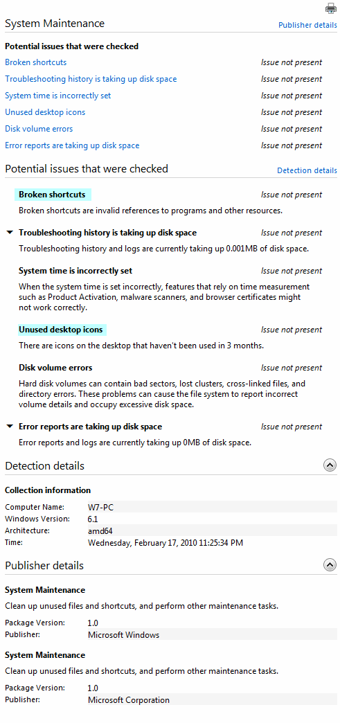 В приведенном выше диалоговом окне говорится, что System Maintenance очищает «неиспользуемые» файлы и ярлыки. Означает ли это, что он удаляет неиспользуемые (но работающие) ярлыки, которые указывают на допустимый целевой файл / папку? На этом этапе нам нужно больше ясности в том, что очищает Обслуживание системы (только сломанные ярлыки или очищает допустимые ярлыки, которые остаются неиспользованными.) И сохраняет ли средство обслуживания системы неиспользуемые / сломанные ярлыки в другой папке, аналогично к мастеру очистки рабочего стола в Windows XP?