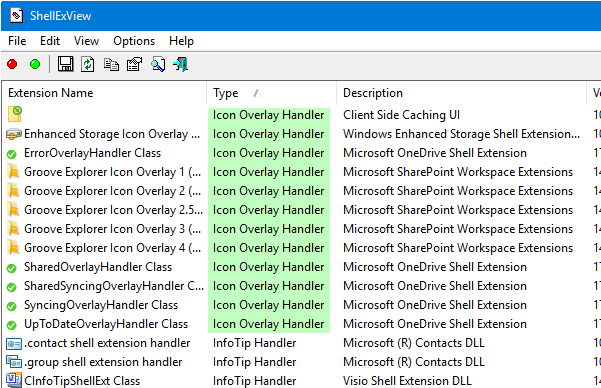 Все эти годы ShellExView от Nirsoft всегда был очень полезен для устранения проблем в среде оболочки и доказал это снова и снова. Этот инструмент можно использовать для отключения расширений оболочки, в том числе держателей Icon Overlay.